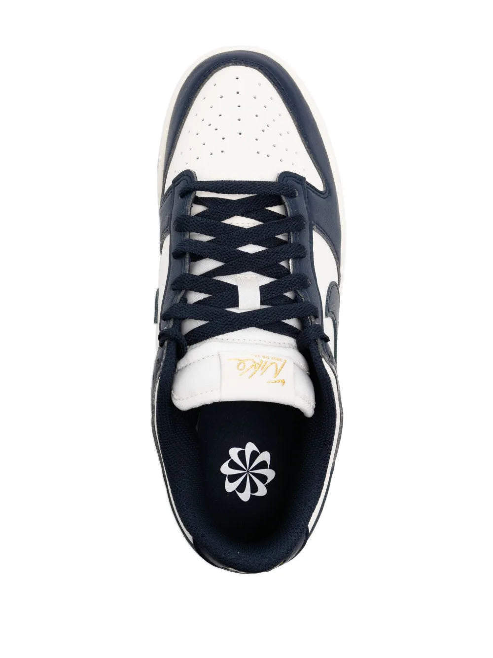 Le sneaker Dunk Low Next Nature "Olympic" fondono la tradizione sportiva con un design sostenibile. La tomaia presenta una base bianca brillante realizzata con materiali riciclati, completata da sovrapposizioni blu navy intenso e da un ricco Swoosh color oro metallizzato che richiama la gloria olimpica. La classica silhouette Dunk è stata mantenuta, con un collare imbottito e una linguetta in mesh per il massimo comfort. La suola in gomma Nike Grind maculata sottolinea la struttura ecosostenibile, mentre l'intersuola bianca mantiene un look pulito e senza tempo. Audaci ma raffinate, queste sneaker celebrano la tradizione sportiva con un tocco moderno e rispettoso dell'ambiente.
