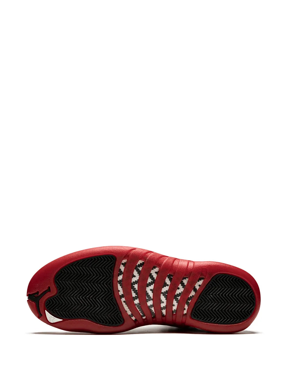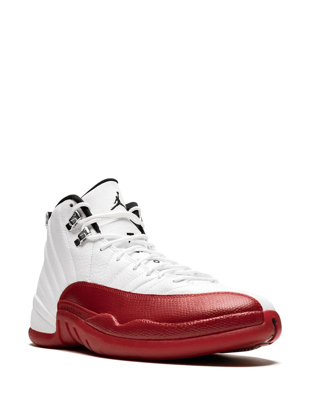 The Air Jordan 12 Retro "White/Red" features a clean white leather upper with bold Varsity Red accents. The classic design includes metallic gold eyelets, a red outsole, and the iconic Jumpman branding. This sneaker blends timeless style with modern details, offering a fresh take on the AJ12's legendary silhouette.