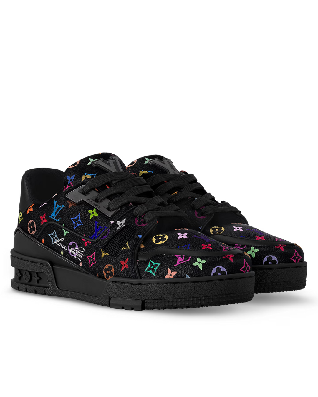 The LV Trainer LV x TM sneaker, part of the new Louis Vuitton x Murakami collection, reinterprets an iconic model in a unique grained calf leather version. Inspired by vintage sports footwear, this creation is adorned with the multicolor Monogram pattern, paying tribute to the exuberant aesthetic of the Japanese artist. The upper is enhanced with a cursive signature, while the back features the number 54, referencing 1854, the year the Maison was founded.
