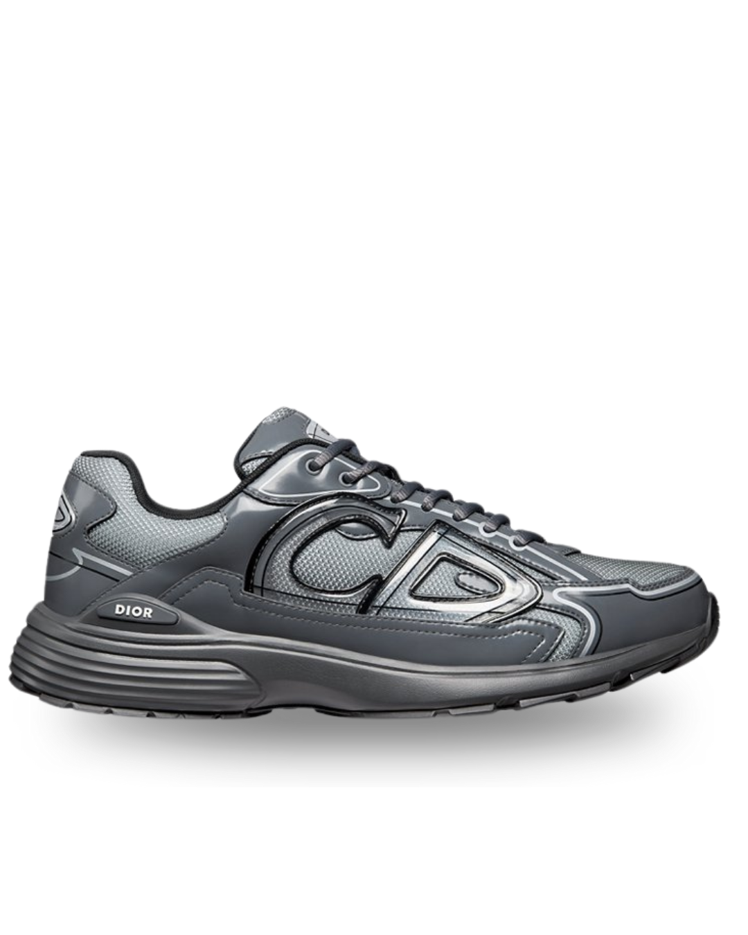 The Dior B30 Countdown Sneaker features a technical mesh and calfskin leather lining, combining breathability with luxury comfort. Its sporty yet sophisticated design is enhanced by the reflective CD30 signature, ultra-light sculpted rubber sole, and sleek Dior branding. Perfect for effortless casual styling with a modern edge.
