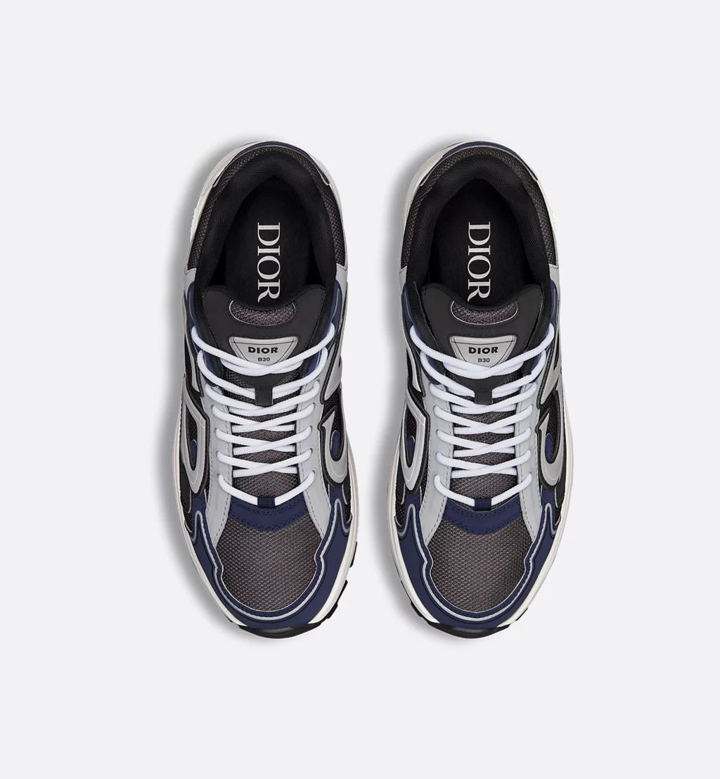 The Dior Countdown B30 Sneaker features a sculpted ultralight rubber sole in white with a black border, complemented by the iconic Dior signature for a stylish touch. This sneaker combines sporty aesthetics with luxury design, offering both comfort and modern appeal. The sleek upper is crafted with technical fabrics, and the bold branding on the tongue and heel completes the look. Perfect for a casual yet high-fashion statement.